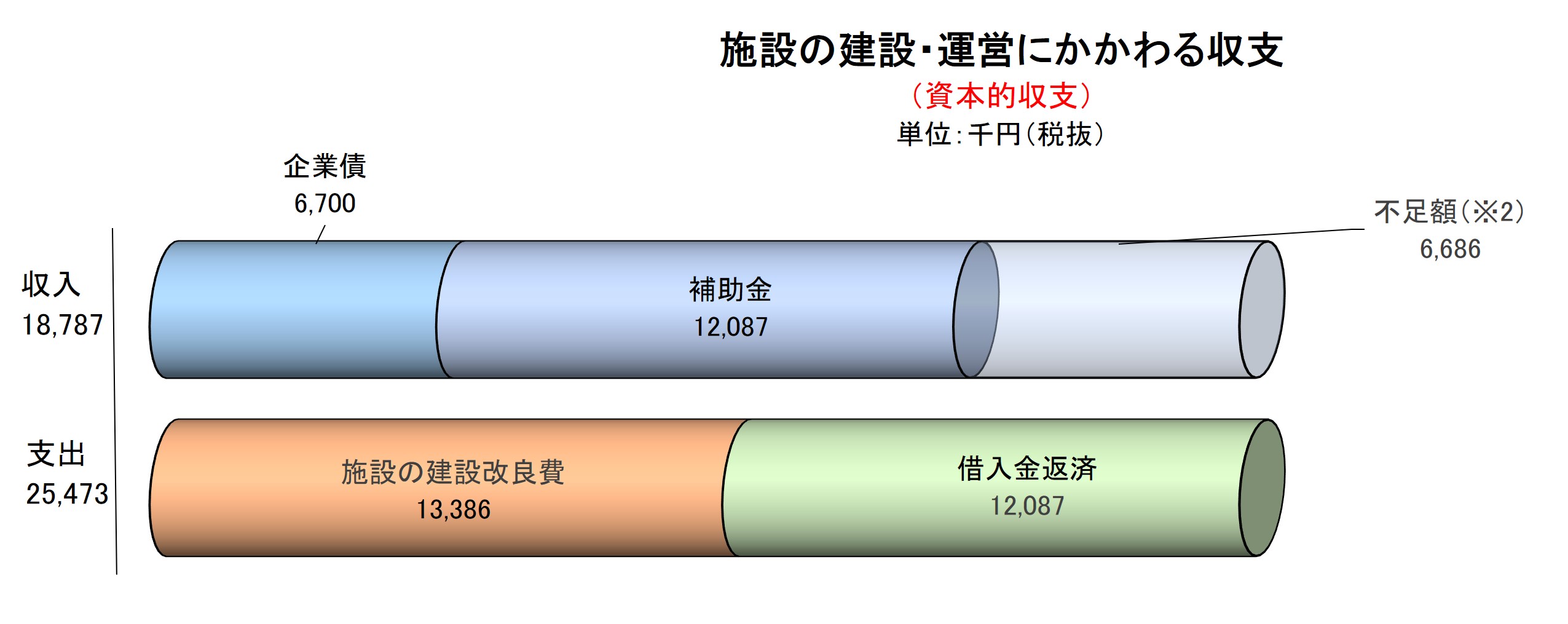 ※2 施設の建設・改良などにかかわる収支の不足額は、減価償却費などの現金の収支を伴わずに企業内部に留保されている資金などで補塡しました